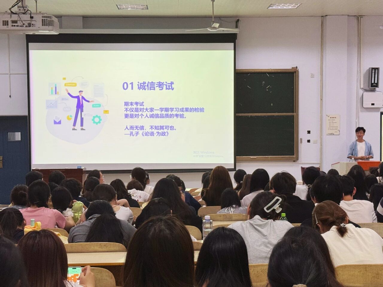 本次主题班会进一步增强了学生的诚信自律和安全防范意识,为加强考风建设、营造诚信考试氛围奠定了坚实的基础,也为假期安全稳定工作提供了有力的保障。