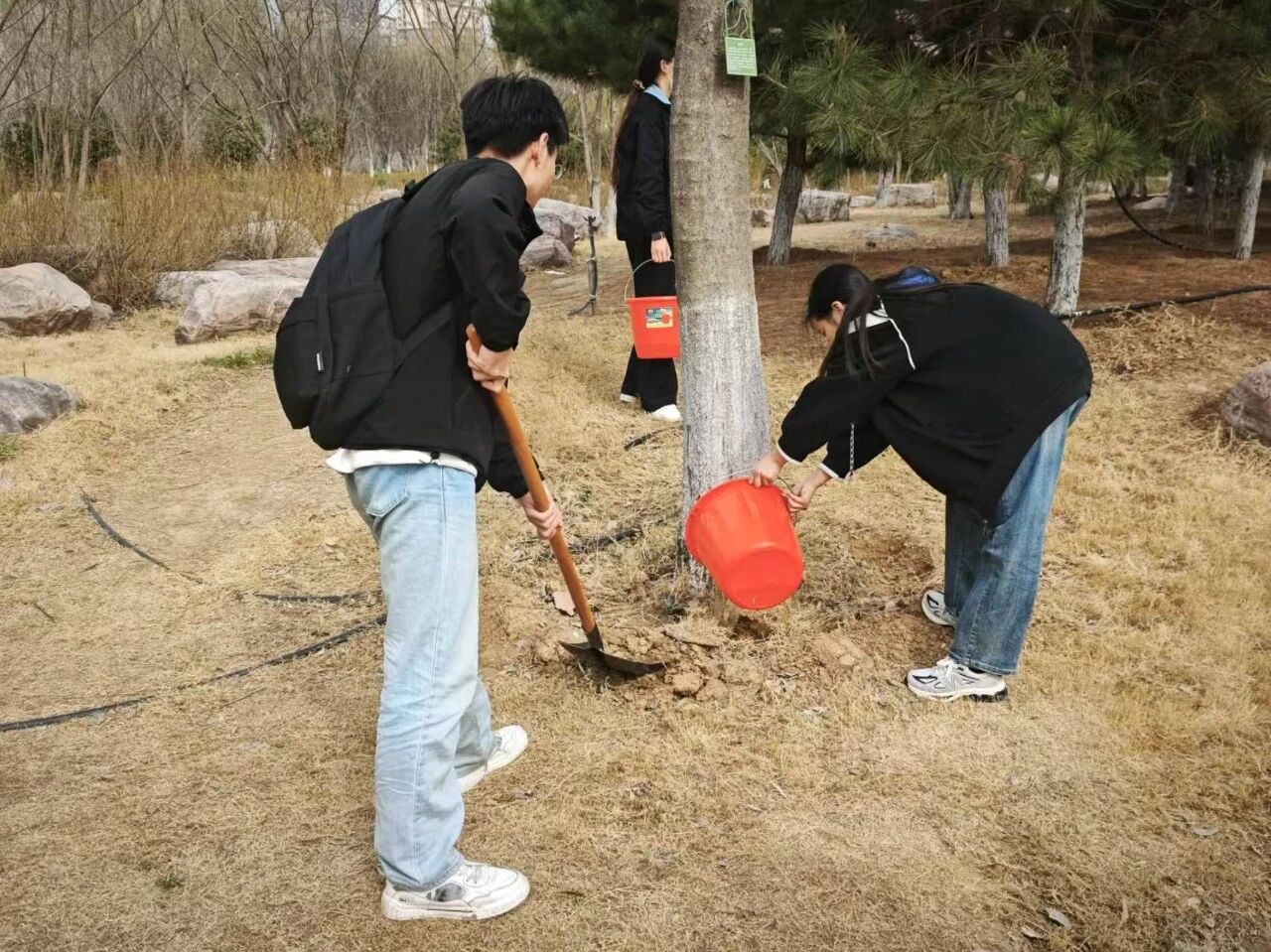 活动中,经济学院的志愿者们齐心协力,挥动手中的铁锹,为公园里的树木松土,提着水桶为公园内的花草树木浇水。每一铲土的落下,都代表着他们对美好环境的向往与追求;每一滴汗水的滑落,都见证着他们为绿色地球贡献的一份力量。